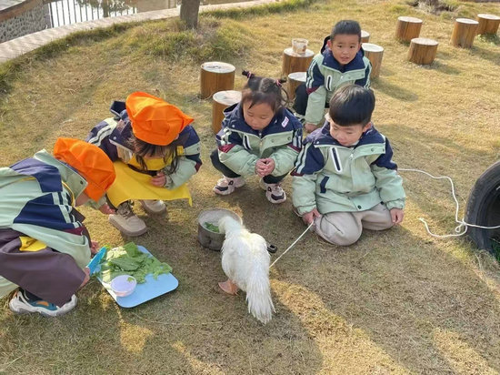 本著環(huán)境創(chuàng)設目標與教育目標一致的整體目標,采取“統(tǒng)籌規(guī)劃、分步實施、重點打造、整體推進”的原則,逐漸形成集學習、游戲、探索于一體的種植園、沙水樂、樹屋、民間藝術館、生活館扎染坊等環(huán)境設施。孩子們在充滿童趣的小山坡、小山洞里體驗與泥土的親密接觸;在曲折的水渠里玩水、網(wǎng)魚,與沙、石、水、木互動,感知靈動的自然生活環(huán)境;在扎染房、編織館、涂鴉館中享受藝術活動的樂趣;在飼養(yǎng)區(qū)養(yǎng)小兔子、小鴨子、蘆丁雞,體驗農(nóng)耕生活,感受收獲和成長。生成了多個班本課程,真正做到尊重兒童內(nèi)在,自然的創(chuàng)設環(huán)境、建構課程,形成“順木之天、以致其性”的課程觀。