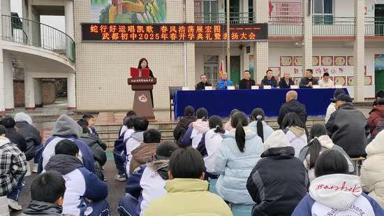 綿陽(yáng)新聞網(wǎng)訊 2月21日,江油市武都初級(jí)中學(xué)700余名師生齊聚學(xué)校操場(chǎng),舉行了以“蛇行好運(yùn)唱?jiǎng)P歌 春風(fēng)浩蕩展宏圖”為主題的2025年春季學(xué)期開(kāi)學(xué)典禮。