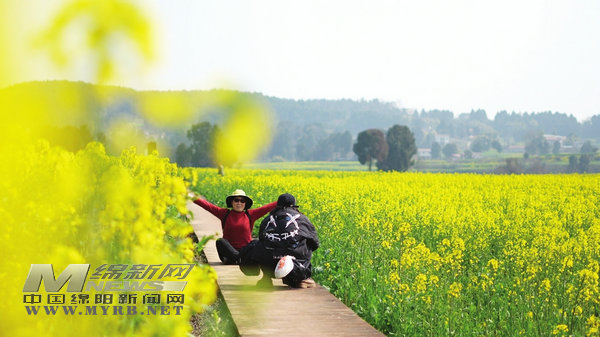 梓潼鴨鶴巖的油菜花綻放,吸引游客打卡。