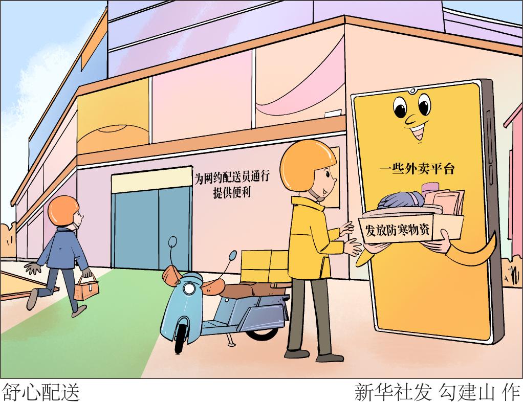 現(xiàn)實(shí)當(dāng)中,一些外賣平臺(tái)企業(yè)也因時(shí)因地制宜,如在冬季給騎手發(fā)放防寒物資、提供餐飲優(yōu)惠、組織免費(fèi)體檢等。一些社區(qū)也組織建立快遞驛站,供他們休息、充電,為他們送去溫暖和關(guān)愛。