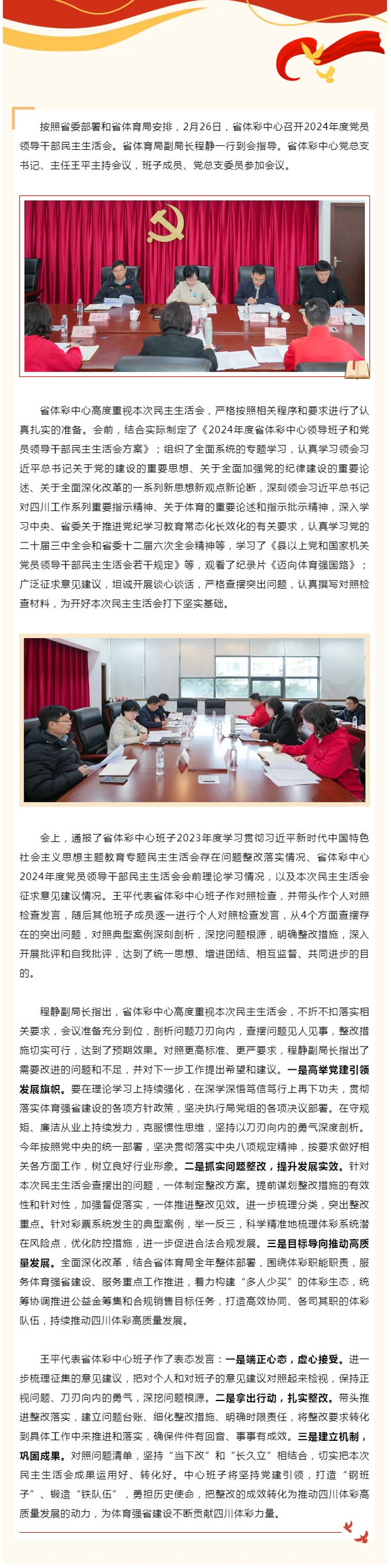 省體彩中心召開(kāi)2024年度黨員領(lǐng)導(dǎo)干部民主生活會(huì)