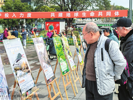 市民在現(xiàn)場瀏覽生物多樣性保護相關(guān)知識展板