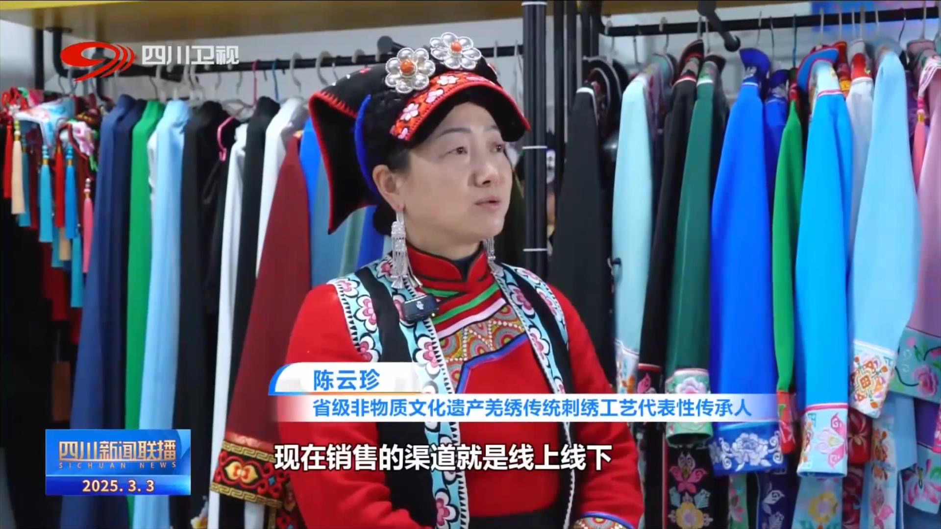 省級非物質(zhì)文化遺產(chǎn)羌繡傳統(tǒng)刺繡工藝代表性傳承人 陳云珍:現(xiàn)在銷售的渠道就是線上線下,我們一起共同來傳承這個文化,不單單走出大山,還想走出全國乃至于全世界。