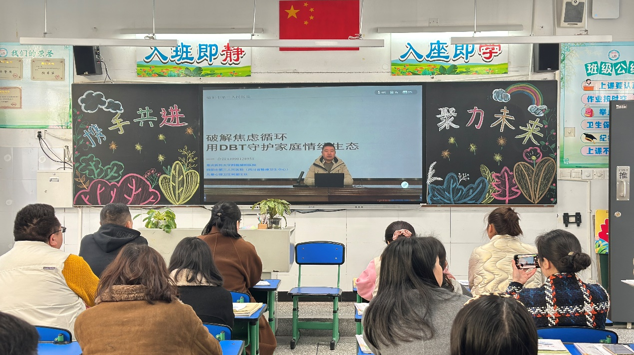 2月28日,綿陽市警鐘街小學(xué)特別邀請綿陽市第三人民醫(yī)院兒童心理衛(wèi)生科余波主任,為全校家長舉辦了以“破解焦慮循環(huán),用DBT守護(hù)家庭情緒生態(tài)”為主題的2025年春季學(xué)期心理講座活動。