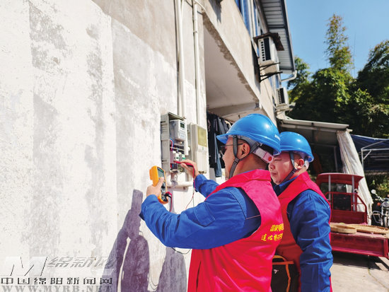 隊(duì)員為社區(qū)群眾檢查供電線路(記者 陳榮 攝)
