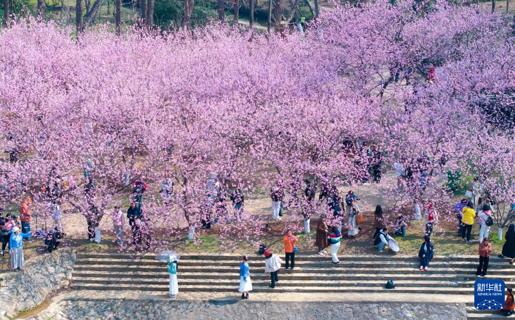 3月6日,游客在南京中山植物園賞櫻游玩(無(wú)人機(jī)照片)。