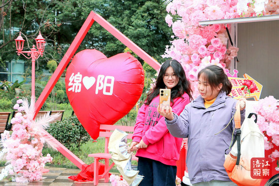 打卡車通體繪制3D立體花墻,后視鏡上垂落的流蘇綴滿鈴蘭花朵。這輛由綿陽(yáng)市商務(wù)局打造的“她與綿陽(yáng)有個(gè)約惠”快閃車,每到一處都會(huì)引發(fā)圍觀。“我們特意在車身周圍設(shè)計(jì)了打卡區(qū),每位女性經(jīng)過(guò)時(shí)都能留下嵌在花海中的紀(jì)念照片。”活動(dòng)相關(guān)負(fù)責(zé)人介紹。