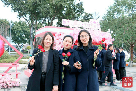 綿陽(yáng)新聞網(wǎng)訊 “快看!那里有一輛粉色巴士!”3月6日中午,在園藝山集中辦公區(qū),一輛載滿粉色玫瑰的流動(dòng)打卡車停在廣場(chǎng)上,聞?dòng)嵍鴣?lái)的姑娘們將車圍得水泄不通。這輛“婦女節(jié)移動(dòng)盲盒”特別班車,正在開(kāi)啟一場(chǎng)春日限定的浪漫奇遇記。