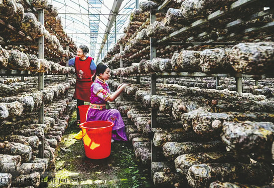 蘑菇豐收采摘忙(蔣春玲 攝)