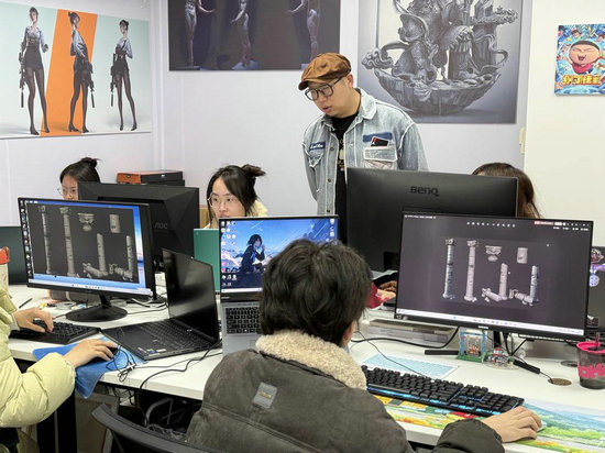 據(jù)他介紹,作為校內(nèi)生產(chǎn)性實踐基地之一,創(chuàng)漫記工作室采用“模擬項目-真實項目”進階培養(yǎng)方式。“近年來,學(xué)院聯(lián)合多家知名企業(yè),先后創(chuàng)建了多個校內(nèi)生產(chǎn)性實踐基地。形成了像‘創(chuàng)漫記’這樣集‘產(chǎn)、學(xué)、研、用、創(chuàng)’于一體的工作室,企業(yè)的賦能,讓產(chǎn)業(yè)和教學(xué)結(jié)合得更加緊密,讓專業(yè)人才培養(yǎng)更符合市場發(fā)展方向。”柳聰表示,對學(xué)生而言,進入工作室就代表著畢業(yè)前,能有機會在校參與到企業(yè)的重點商業(yè)項目中。讓學(xué)生在畢業(yè)前就積累起工作經(jīng)驗,企業(yè)級的制作標準也能讓他們快速完成從學(xué)生到職業(yè)人的轉(zhuǎn)變。