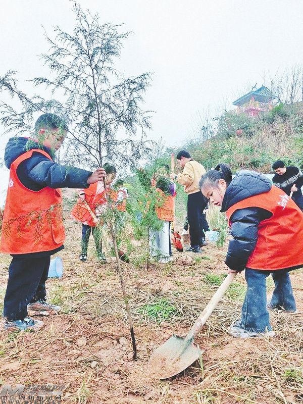 三臺(tái)小學(xué)生參加植樹活動(dòng)(記者李錦輝攝)
