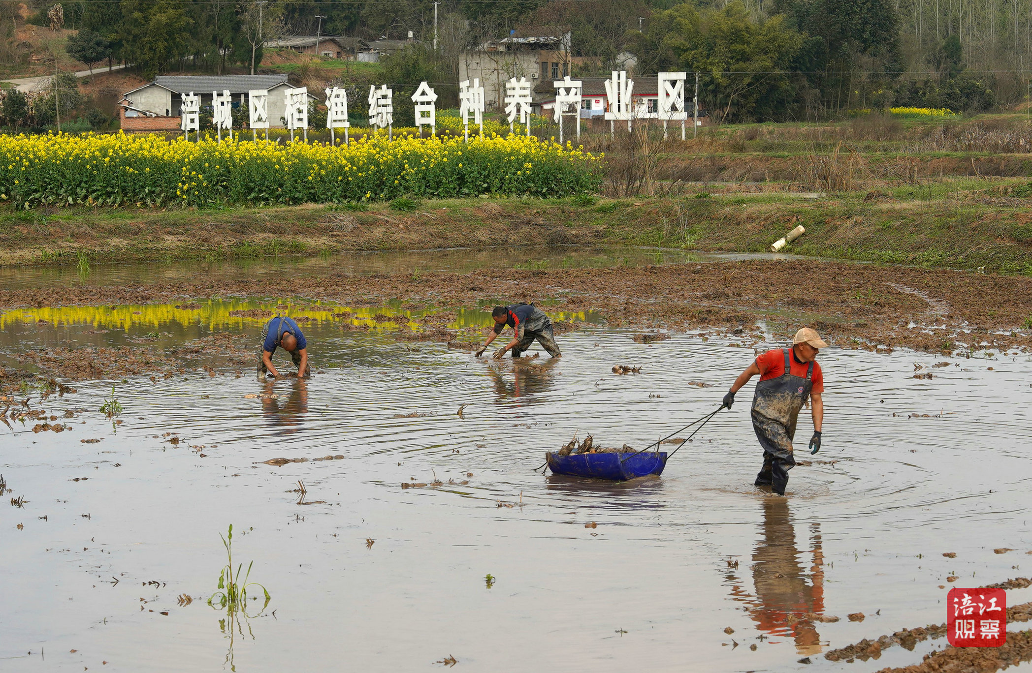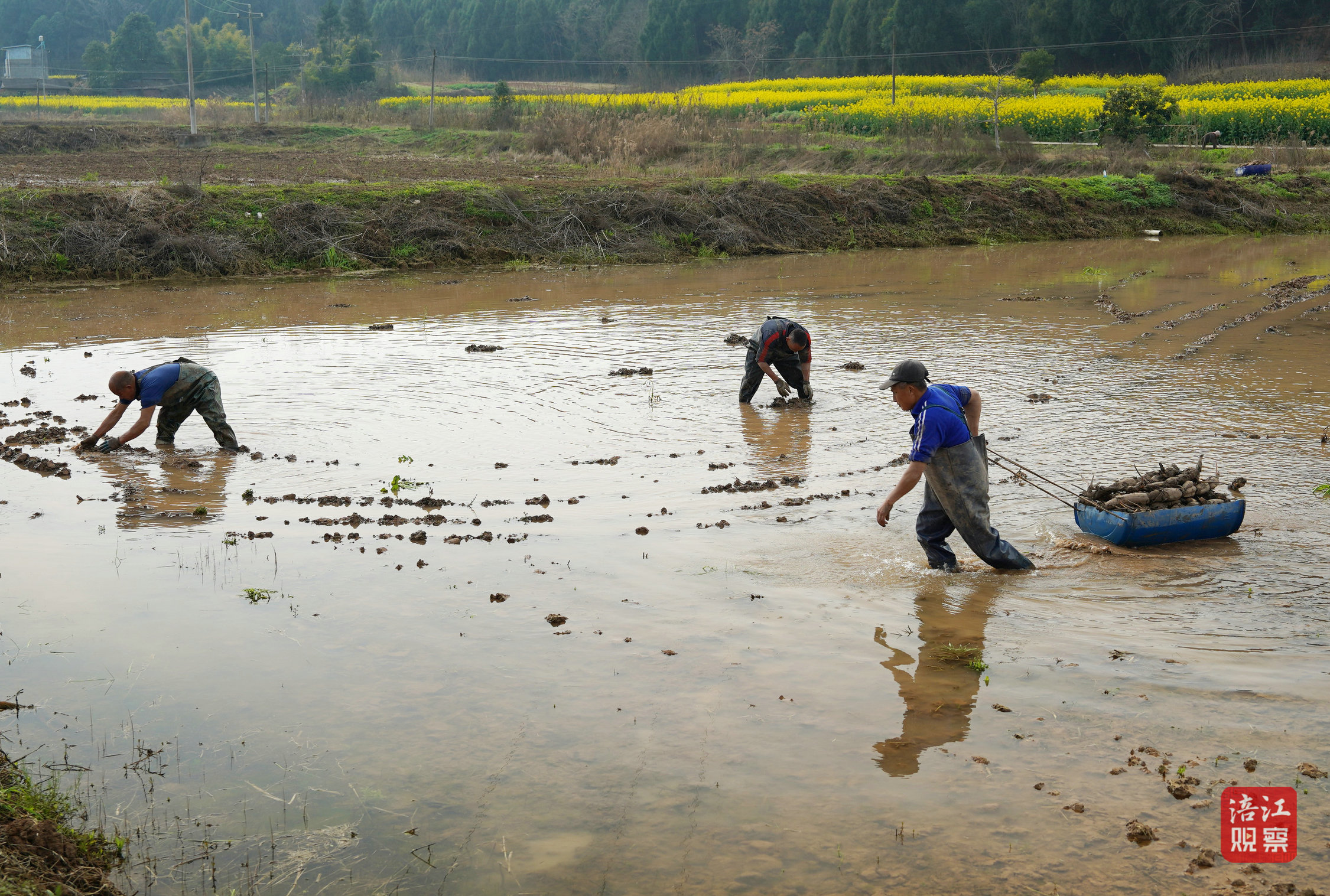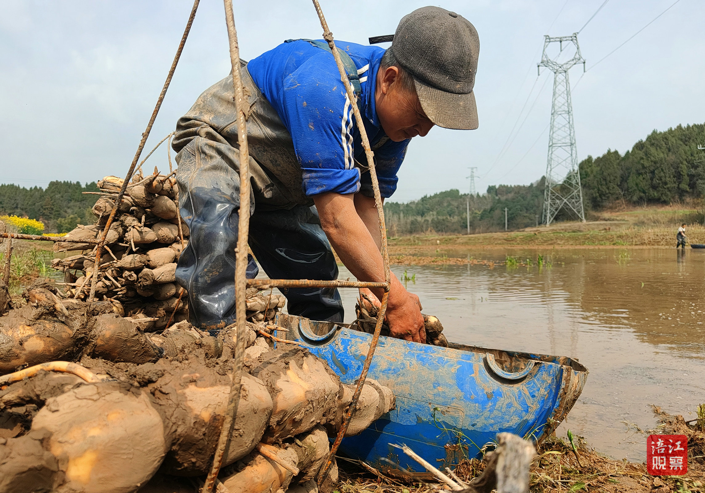 3月11日,綿陽市涪城區(qū)吳家鎮(zhèn)的荷塘里一派繁忙景象。工人們身著防水服,動作嫻熟地將蓮藕種子埋入塘泥,種下致富的希望。