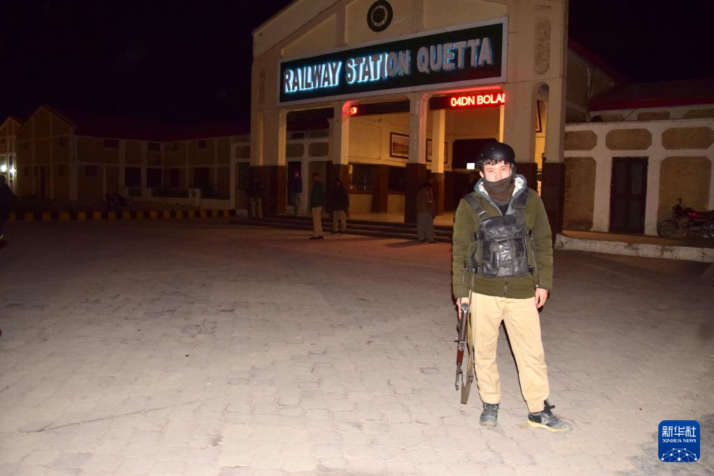 3月11日,在巴基斯坦西南部俾路支省首府奎達(dá),警察在火車站警戒。 新華社發(fā)