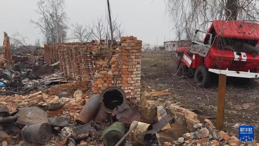 這張俄羅斯國(guó)防部3月13日發(fā)布的視頻截圖顯示的是庫(kù)爾斯克州一個(gè)定居點(diǎn)被損壞的建筑。新華社發(fā)(俄羅斯國(guó)防部供圖)