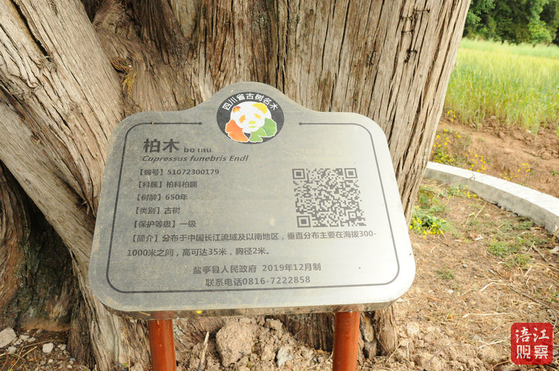 在三臺(tái)縣塔山鎮(zhèn)清溪村村口,有一棵超過千年的古柏木。這棵古柏樹真實(shí)樹齡為1036歲,為國(guó)家一級(jí)古樹,高30米,胸圍3.7米,約三人合抱。