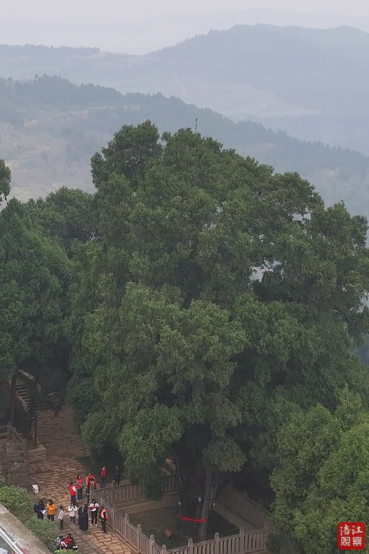在游仙區(qū)忠興鎮(zhèn)佛祖寺有棵“荊山雙柏”,高達(dá)22米,枝梢蓊郁,胸徑近兩米,三五人伸臂方能合圍。