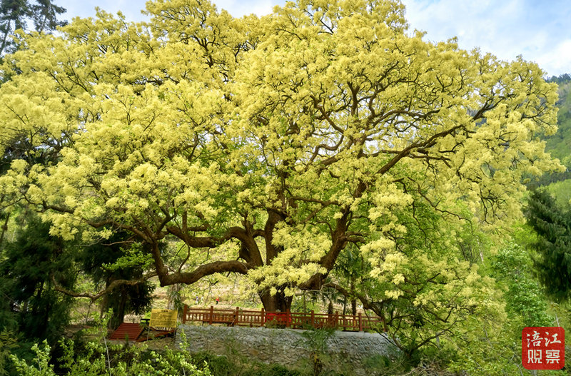 早在100年前,英國(guó)園藝學(xué)家和植物學(xué)家爾尼斯特·亨利·威爾遜路過水晶鎮(zhèn)馬元村麻地口時(shí)在此拍下了這棵大樹的照片,拍攝時(shí)間1910年8月19日。