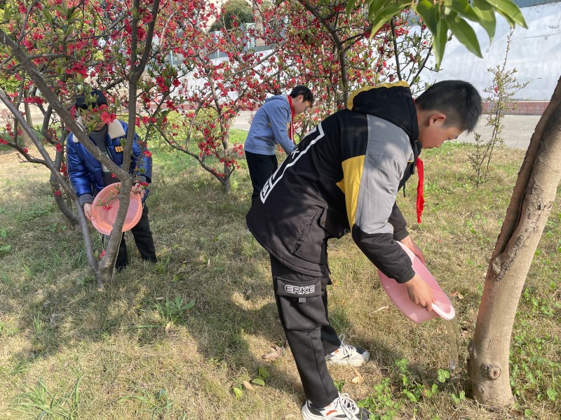 該校政教處副主任張堯博在校會上講解了“312植樹節(jié)”的由來、意義和我國的“青山綠水”環(huán)保理念,并組織師生對校園內(nèi)的花草樹木進行了施肥和澆灌。