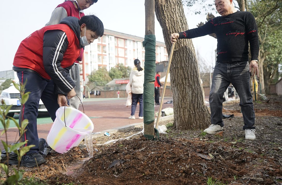 此次植樹活動(dòng)別具一格,每棵新栽種的樹苗都以班級(jí)命名,成為各班集體的象征和共同成長(zhǎng)的見(jiàn)證。學(xué)生們熱情高漲,干勁十足,有的挖坑,有的扶苗,有的培土,有的澆水,各個(gè)環(huán)節(jié)銜接有序,配合默契,現(xiàn)場(chǎng)呈現(xiàn)出一派熱火朝天的勞動(dòng)景象。經(jīng)過(guò)兩個(gè)多小時(shí)的辛勤勞動(dòng),一棵棵新栽種的樹苗迎風(fēng)挺立,為初春的校園增添了勃勃生機(jī)。