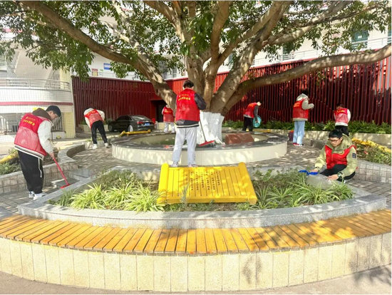 得英大道旁,同學(xué)們手持工具,為校園主干道的花草“梳妝打扮”:修剪枯枝、清理雜草、松土澆水……協(xié)作間,花兒開得更艷、樹葉顯得更翠。綠化校園、守護(hù)校園的綠意是該校每個人的責(zé)任。