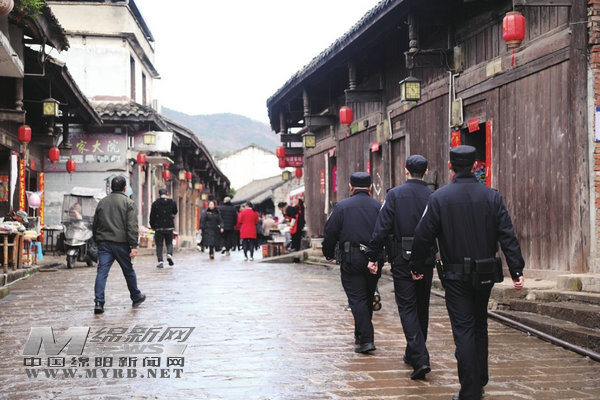 江油公安在二郎廟巡邏守護(hù)高抬戲演出