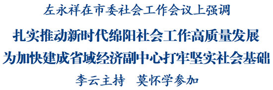 綿陽新聞網(wǎng)訊 3月18日,市委社會工作會議召開,副省長、市委書記左永祥出席會議并講話。他強調(diào),要深入學習貫徹習近平總書記關于社會工作的重要論述和重要指示精神,全面落實中央和省委社會工作會議部署要求,堅定不移走中國特色社會主義社會治理之路,不斷夯實基層治理基礎,扎實推動新時代綿陽社會工作高質(zhì)量發(fā)展,為加快建成省域經(jīng)濟副中心打牢堅實社會基礎。
