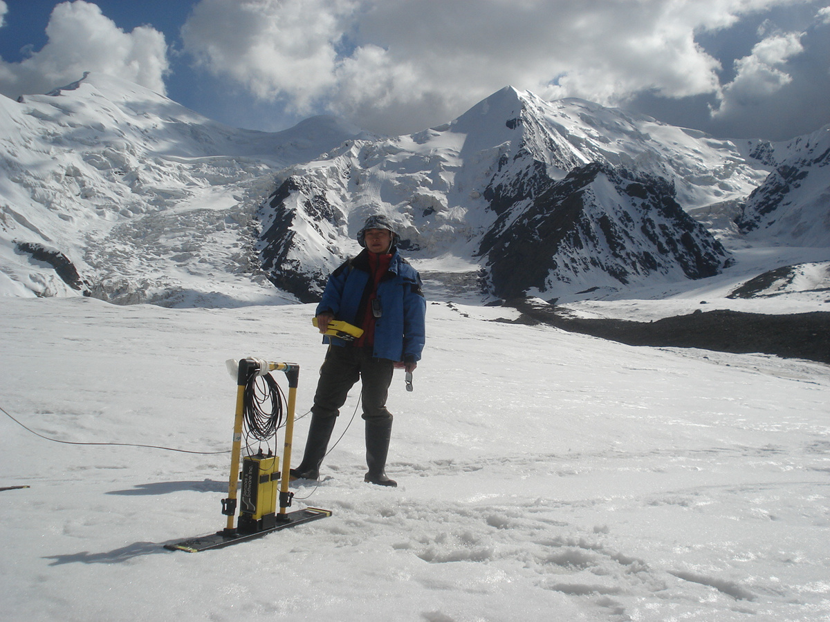 科研人員用探地雷達(dá)測(cè)量冰川厚度。 成都山地所供圖