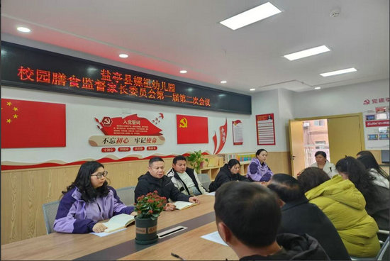 綿陽新聞網訊 3月19日中午,鹽亭縣嫘祖幼兒園在黨建室成功召開了2025年春校園餐家長監(jiān)督委員會第一屆第二次會議。此次會議,不僅是對上級部門關于校園食品安全政策的深入貫徹,更是家園合作、共筑幼兒飲食安全屏障的又一里程碑。膳食監(jiān)督家長委員會全體成員參會。