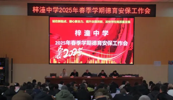 為了落實(shí)“站在新起點(diǎn)、凝心聚合力、提升治理效能,加快學(xué)校全面高質(zhì)量發(fā)展”的學(xué)??傮w工作要求,3月17日下午,梓潼中學(xué)在學(xué)術(shù)報(bào)告廳召開了以“強(qiáng)化德育引領(lǐng) 構(gòu)建平安校園”為主題的2025年春季學(xué)期德育安保工作會議。會議由該校副校長王永林主持,會議中進(jìn)一步明確了學(xué)校德育安保工作重點(diǎn)與方向,旨在凝聚合力,提升學(xué)校德育安保工作治理水平,為新學(xué)期學(xué)校德育與安保工作筑牢根基,推動學(xué)校全面高質(zhì)量發(fā)展。