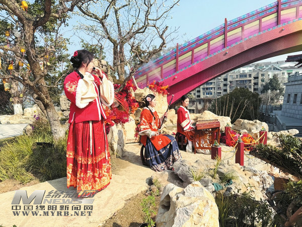 在“望江亭語(yǔ)”體驗(yàn)區(qū),古色古風(fēng)的亭宇下,身著漢服的演奏者輕撥古琴,四周還有流水與朦朧煙霧,古風(fēng)古韻的氛圍感“拉滿”,引得游客紛紛舉起手機(jī)留影。