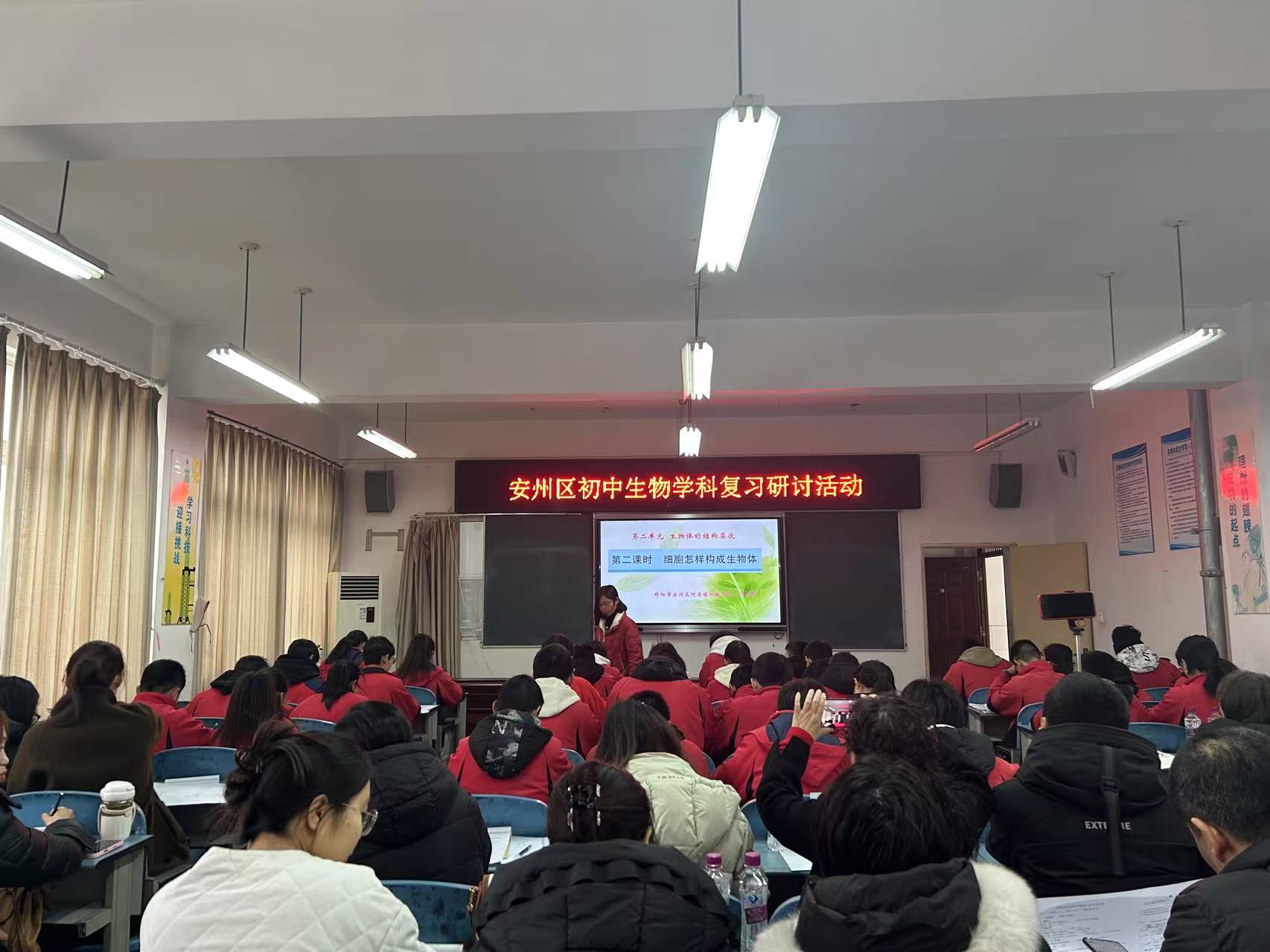 為了更好適應(yīng)義務(wù)教育階段初中生物課程改革要求,深刻理解和把握義務(wù)教育階段生物新課程標(biāo)準(zhǔn),有效促進(jìn)初中生物課堂教學(xué)質(zhì)量提升及教師專業(yè)發(fā)展,全面落實(shí)新課標(biāo)要求,提升教師教學(xué)水平及備考質(zhì)量,3月18日,安州區(qū)教育研究與發(fā)展中心在河清中學(xué)舉行了2025年春初中生物學(xué)科復(fù)習(xí)研討活動(dòng)。本次活動(dòng)聚焦中考復(fù)習(xí)策略與課堂教學(xué)實(shí)效,安州區(qū)教育研究與發(fā)展中心教研員李小英老師,全區(qū)七八年級生物教師參與了本次活動(dòng)。