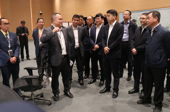 2024年1月4日,國家鐵路局黨組書記、局長費(fèi)東斌(右四)調(diào)研珠三角城際調(diào)度指揮中心,與廣東省共同提出推動大灣區(qū)軌道交通“四網(wǎng)融合”。
