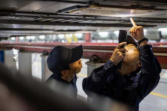 工作人員在惠州東動車所對城際列車進(jìn)行檢修。