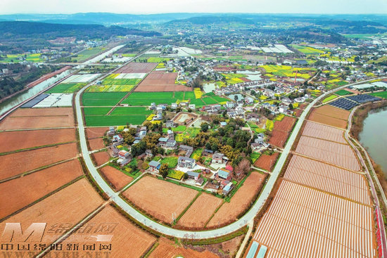 三月的綿陽鄉(xiāng)村,條條水渠環(huán)繞農(nóng)田,沃野美景如詩如畫。(記者 王勇 攝)