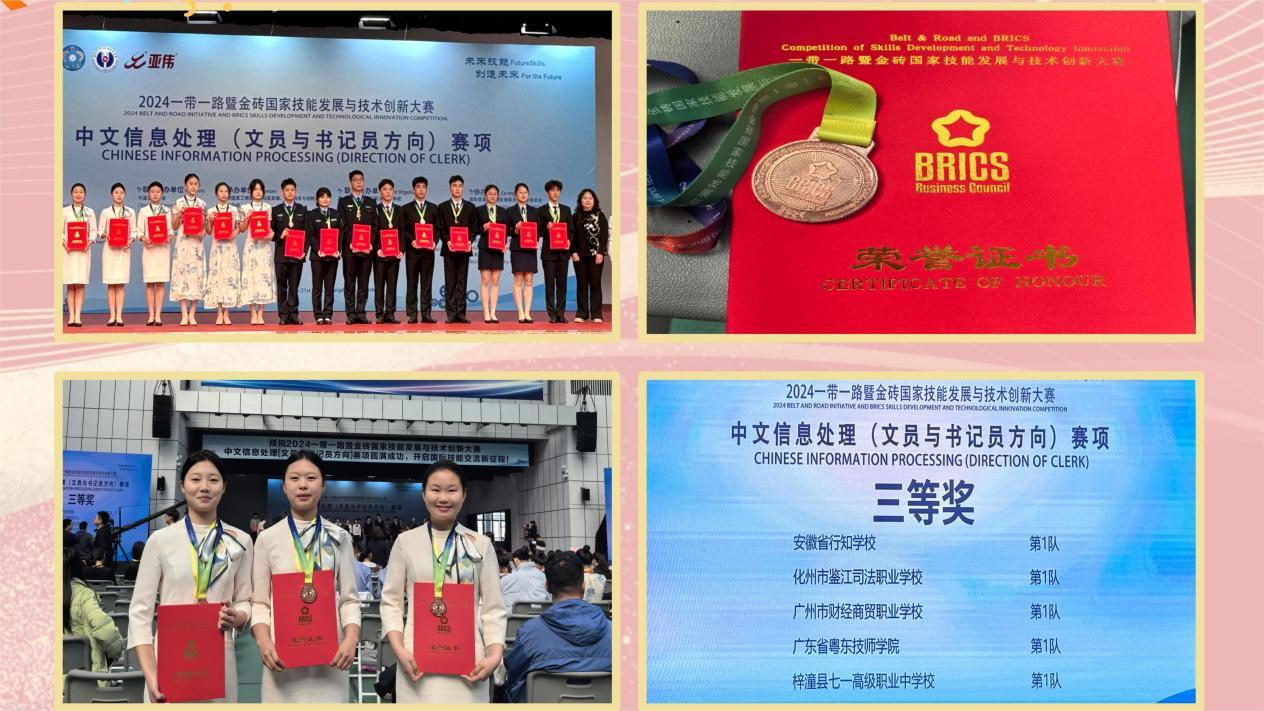 3月17日-21日,由金磚國家工商理事會中方理事會、一帶一路暨金磚國家技能發(fā)展國際聯(lián)盟、一帶一路暨金磚國家技能發(fā)展與技術(shù)創(chuàng)新培訓(xùn)中心主辦,教育部中外人文交流中心和中國發(fā)明協(xié)會聯(lián)合主辦,由金磚國家工商理事會技能發(fā)展、應(yīng)用技術(shù)與創(chuàng)新中方工作組承辦,深圳市福田區(qū)華強職業(yè)技術(shù)學(xué)校、北京速錄科技有限公司、北京賽克新興科技有限公司等單位聯(lián)合承辦的2024年“一帶一路”暨金磚國家技能發(fā)展與技術(shù)創(chuàng)新大賽中文信息處理賽項(中職組)在深圳揭曉。梓潼縣“七一”高級職業(yè)中學(xué)校代表隊獲得三等獎(銅牌),展現(xiàn)了該校學(xué)子扎實的專業(yè)素養(yǎng)和頑強的拼搏精神。