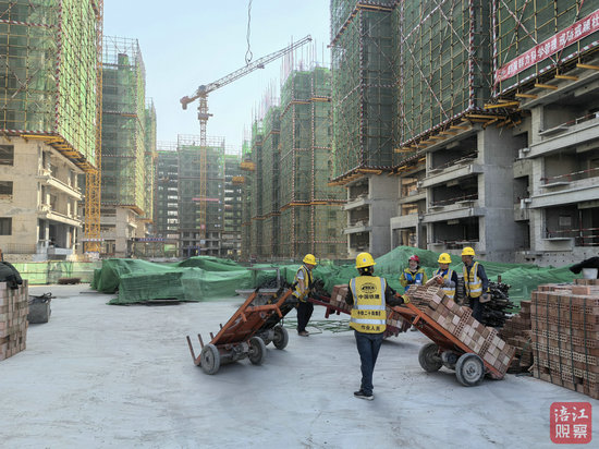 3月25日,記者來到該項(xiàng)目建設(shè)工地,現(xiàn)場(chǎng)機(jī)械轟鳴,工人們正忙著進(jìn)行房屋主體和二次結(jié)構(gòu)施工,部分樓棟已接近封頂。