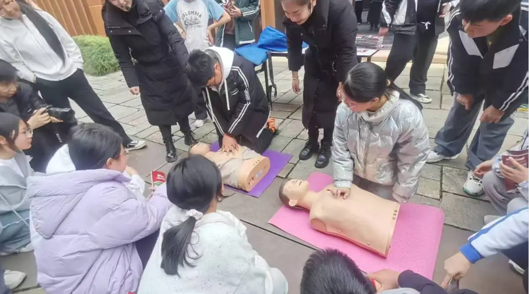 隨后,學(xué)生們走進(jìn)北川地震博物館。館內(nèi)豐富的圖文資料、實(shí)物展品以及多媒體展示,生動(dòng)再現(xiàn)了地震災(zāi)難和災(zāi)后重建的全過(guò)程。在博物館內(nèi),學(xué)生系統(tǒng)學(xué)習(xí)了地震科學(xué)知識(shí)、抗震救災(zāi)精神及防災(zāi)減災(zāi)技術(shù),展館內(nèi)實(shí)物展品、互動(dòng)模型和沉浸式影像引發(fā)學(xué)生熱烈討論。參觀結(jié)束后,隨行老師現(xiàn)場(chǎng)教學(xué),“急救技能小課堂”,指導(dǎo)學(xué)生進(jìn)行傷口包扎、心肺復(fù)蘇等實(shí)操訓(xùn)練,學(xué)生們認(rèn)真學(xué)習(xí)、積極實(shí)踐,通過(guò)分組演練強(qiáng)化應(yīng)急自救互救能力。