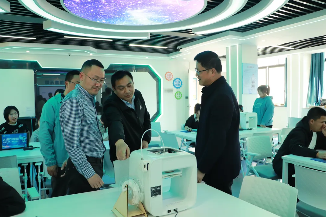 湯榮生到三臺(tái)中學(xué)AI創(chuàng)客實(shí)驗(yàn)室、天文館、理化生頂裝實(shí)驗(yàn)室、數(shù)字化探究實(shí)驗(yàn)室實(shí)地查看、觀摩訪談,就學(xué)??茖W(xué)實(shí)驗(yàn)課程的開(kāi)設(shè),地理學(xué)科教室與天文館的科普基地建設(shè)情況進(jìn)行了仔細(xì)調(diào)研,并高度評(píng)價(jià)了該校積極組織師生及教職工子女在三臺(tái)中學(xué)天文館進(jìn)行天文觀測(cè)等對(duì)青少年科普教育主動(dòng)作為的工作。