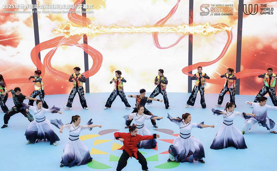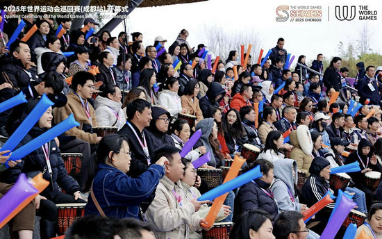 3月28日,成都世界園藝博覽園臨湖劇場。如雷鼓聲中,2025年世界運動會巡回賽(成都站)正式拉開帷幕。