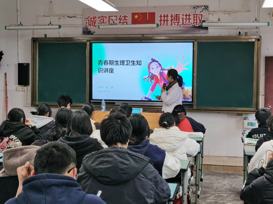隨后,張艷老師以“青春綻放,健康成長”為主題,開啟青春對話。她科學解讀了青春期第二性征發(fā)育、月經(jīng)初潮等生理現(xiàn)象。通過互動問答的形式,張老師就“如何正視容貌焦慮”“如何妥善處理異性交往”等敏感話題進行了專業(yè)指導,鼓勵同學們勇敢迎接成長的挑戰(zhàn),學會自我保護,珍視身心健康。