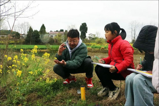 李老師說(shuō):站在油菜花田旁,看著四組兒童小身影伏在畫(huà)板前,我第一次發(fā)現(xiàn)山雀的鳴響竟比教室鈴聲更動(dòng)聽(tīng)。有一位兒童用靛藍(lán)色涂抹天空時(shí)突然說(shuō):“老師,我畫(huà)的天空,是漸變顏色”。她睫毛上的金黃花粉在顫動(dòng),美術(shù)當(dāng)中的專業(yè)技法脫口而出,當(dāng)山風(fēng)掀起孩子們的畫(huà)紙,那些飛舞的線條里藏著比技法更珍貴的東西——被自然撫慰的童年,正在彩色鉛筆里悄悄綻放。原來(lái)教育的真諦,是讓每顆孤獨(dú)的星星都找到屬于自己的銀河。 (史小林 竇 偉 黃友勇)