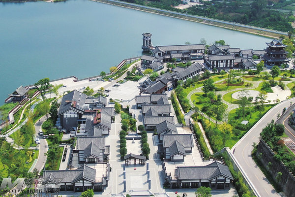 漫步450米長的仿古主街,腳下青石板路蜿蜒,兩側(cè)15座川西北民居錯(cuò)落分布。翹角屋檐與雕花窗欞交相輝映,散發(fā)著濃郁的科舉文化氣息。踏上水街棧橋,40萬平方米的水域波光粼粼,倒映著白墻黛瓦。345米的蜿蜒水街與600米棧橋串聯(lián)起3棟濱水建筑。在親水碼頭,文昌帝君執(zhí)筆點(diǎn)狀元的壁畫栩栩如生,盡顯文化與自然交融之美。