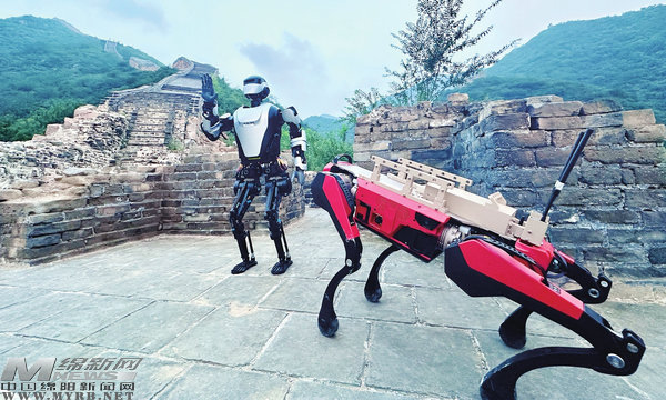 “綿陽造”機(jī)器人亮相2024世界機(jī)器人大會,人形機(jī)器人“夸父—MY”登上長城,擔(dān)任兼職巡檢員和講解員。(視覺綿陽資料圖)