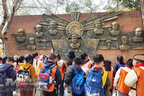 孩子們在鄧稼先雕塑前聆聽紅色故事(記者 劉曉東攝)