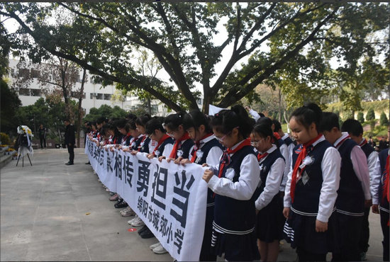 綿陽(yáng)新聞網(wǎng)訊 為了緬懷烈士的豐功偉績(jī),寄托對(duì)烈士的哀思,傳承紅色基因,加強(qiáng)學(xué)生的思想道德建設(shè),激發(fā)廣大師生的愛(ài)國(guó)熱情。4月3日上午,綿陽(yáng)市城郊小學(xué)部分學(xué)生代表以及黨員教師代表到南山烈士陵園,開(kāi)展了以“緬懷先烈志,共鑄中華魂”為主題的2025年清明節(jié)祭掃活動(dòng)。