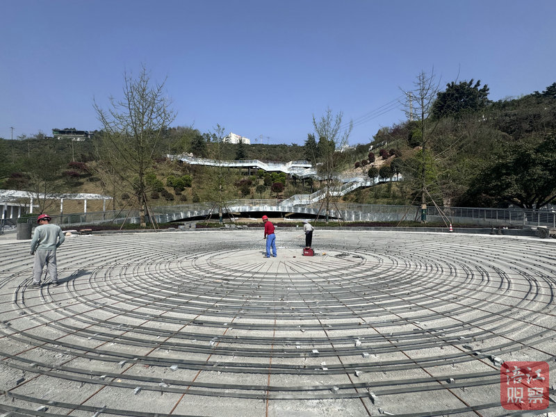 4月8日,記者在綿陽市游仙區(qū)科學(xué)城片區(qū)環(huán)境提升項目現(xiàn)場看到,工人們正在抓緊實施老龍山公園廣場及道路施工。
