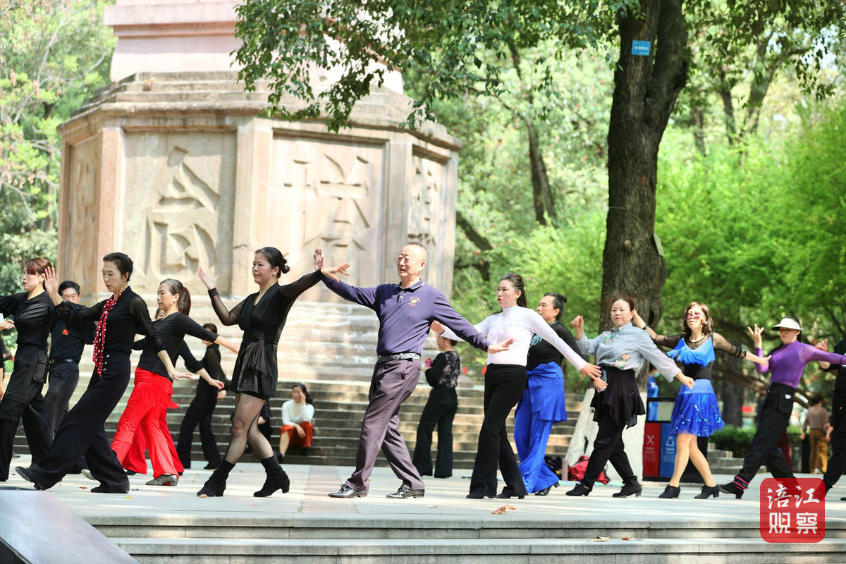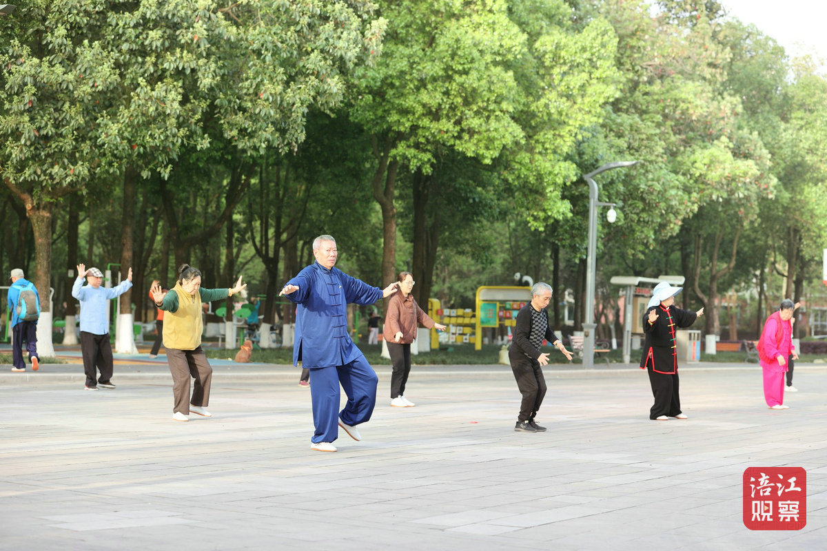 公園里,打太極拳的老人緩緩?fù)普?/p>