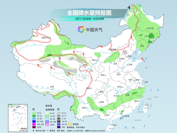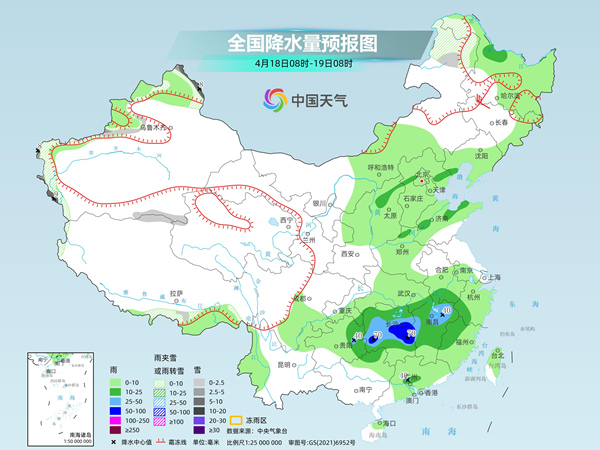 明天,內(nèi)蒙古東北部、黑龍江西北部、新疆北疆北部和沿天山西部及南疆西部山區(qū)、西藏南部等地部分地區(qū)有小雪或雨夾雪,其中,新疆北疆阿勒泰山區(qū)和南疆西部山區(qū)等地部分地區(qū)有中到大雪。安徽南部、湖北東部、湖南大部、江西中北部、浙江西部、福建西北部、廣東中部、廣西北部、貴州東部等地部分地區(qū)有中到大雨,其中,湖南東部和西南部、江西西部等地部分地區(qū)有暴雨。