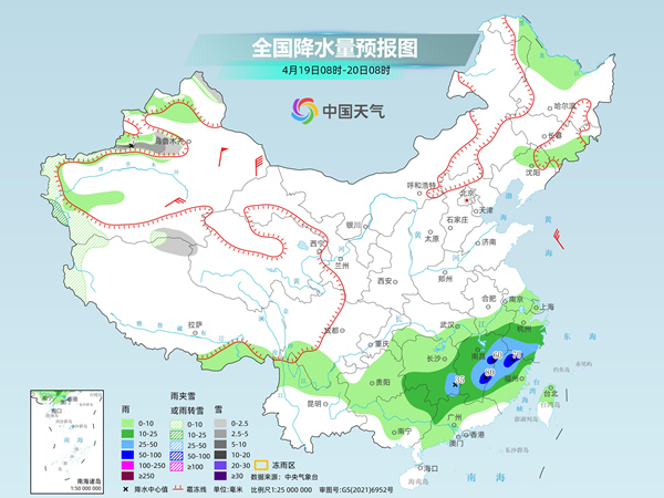 后天,新疆阿勒泰山區(qū)和沿天山西部及南疆西部山區(qū)、西藏西部等地部分地區(qū)有小雪或雨夾雪,其中,新疆沿天山地區(qū)西部等地部分地區(qū)有中到大雪。湖南南部、江西、安徽南部、浙江中南部、福建中北部、廣東北部、廣西北部等地部分地區(qū)有中到大雨,其中,江西東部、浙江南部、福建西北部等地部分地區(qū)有暴雨。