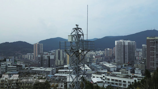 在鹽亭縣白塔山火情監(jiān)測點,一名高大的“哨兵”全天候值守。該監(jiān)控設(shè)備安裝在15米高的鐵塔上,一雙“火眼金睛”能全方位24小時不間斷監(jiān)測白塔山附近7至10公里范圍內(nèi)的火情。